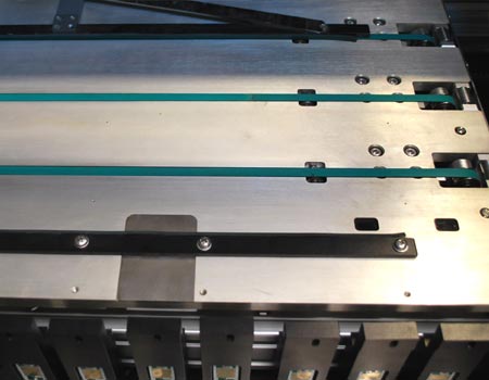 1.電路板傳動采用精密電機帶動工業皮帶配合精密導軌實現,有效提高貼片精度。
