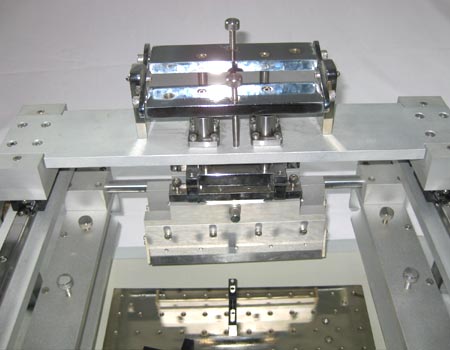 本機(jī)x、y、z和角度四軸都可以精密調(diào)整,通過調(diào)整四軸實(shí)現(xiàn)PCB板上的焊點(diǎn)和固定于模板框架上的模板相應(yīng)開孔坐標(biāo)的一一對應(yīng),并通過平臺的上升下降調(diào)整PCB和模板之間的距離。