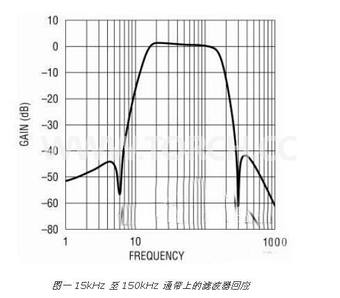高通濾波器的截止范圍為 6.7kHz 至 100kHz,而低通濾波器則為 66.7kHz 至 1MHz。最佳濾波器帶寬設(shè)置可以透過(guò)一種軟件算法來(lái)調(diào)節(jié),而且是數(shù)據(jù)頻率、數(shù)據(jù)速率和編碼的函數(shù)。濾波器帶寬必須足夠窄,以最大限度地?cái)U(kuò)大 ADC 輸入的動(dòng)態(tài)范圍,同時(shí)又必須足夠?qū)挘员Wo(hù)訊號(hào)躍變和脈沖寬度 (正確的濾波器設(shè)置確保可靠的 DSP 卷標(biāo)訊號(hào)檢測(cè))。